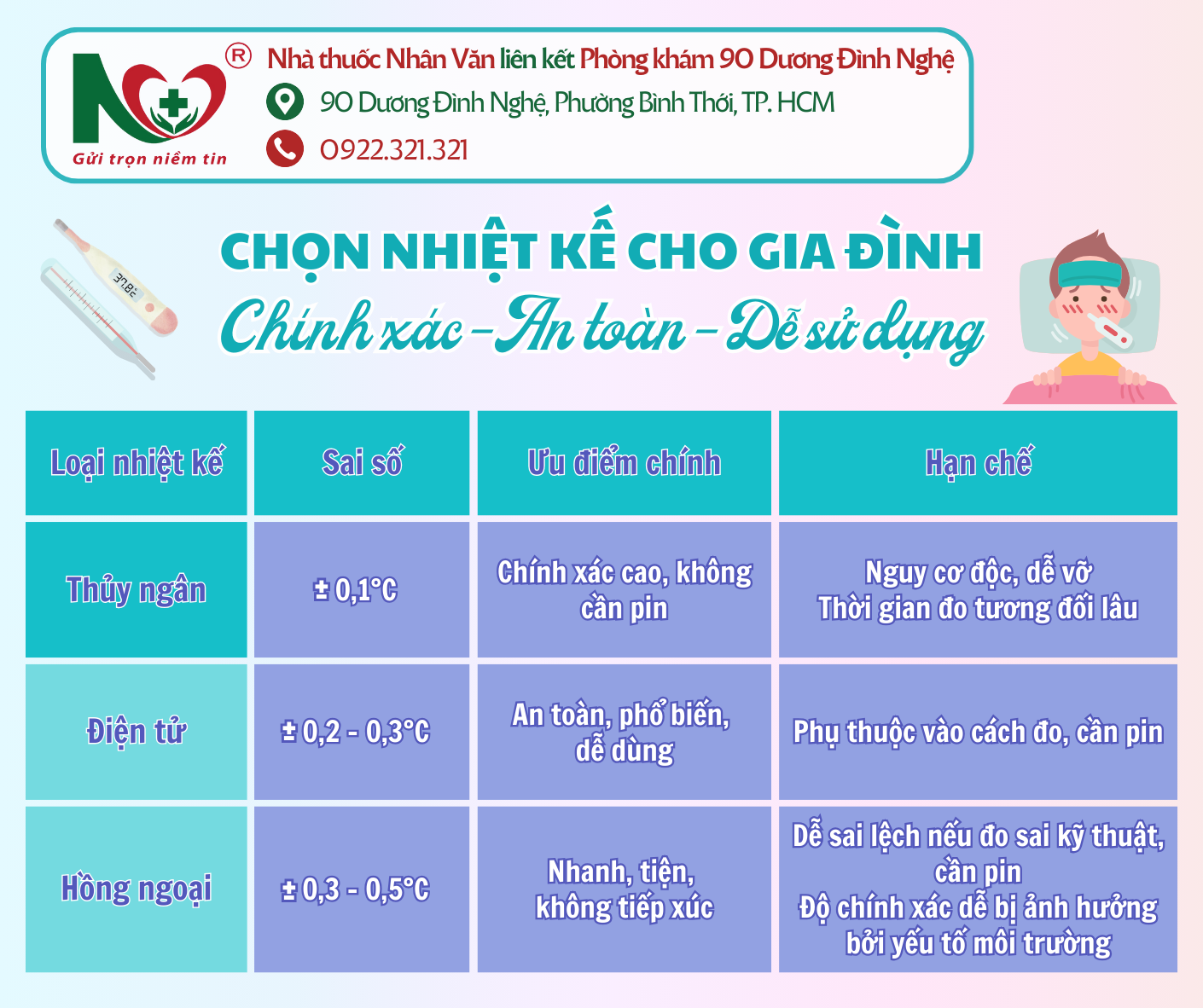 Tóm lại, hãy cân nhắc kỹ giữa CHÍNH XÁC - AN TOÀN - DỄ SỬ DỤNG để lựa chọn loại nhiệt kế phù hợp nhất cho bạn và gia đình, giúp việc theo dõi sức khỏe hằng ngày trở nên đơn giản, hiệu quả và an tâm hơn.