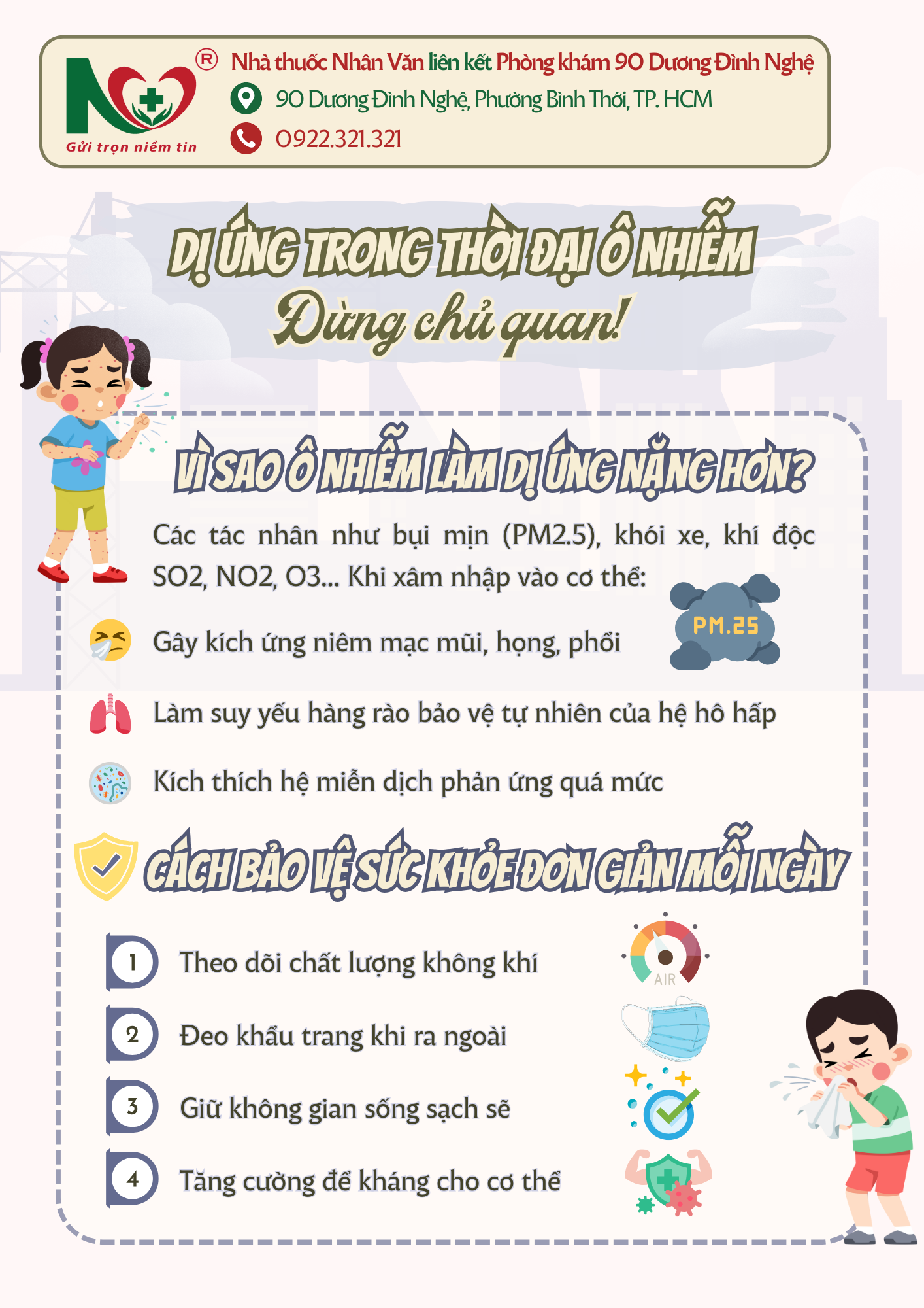 📍 Nhà thuốc Nhân Văn liên kết Phòng khám 90 Dương Đình Nghệ luôn sẵn sàng tư vấn các giải pháp chăm sóc hô hấp – dị ứng – tăng cường đề kháng, giúp bạn và gia đình an tâm hơn mỗi ngày.
