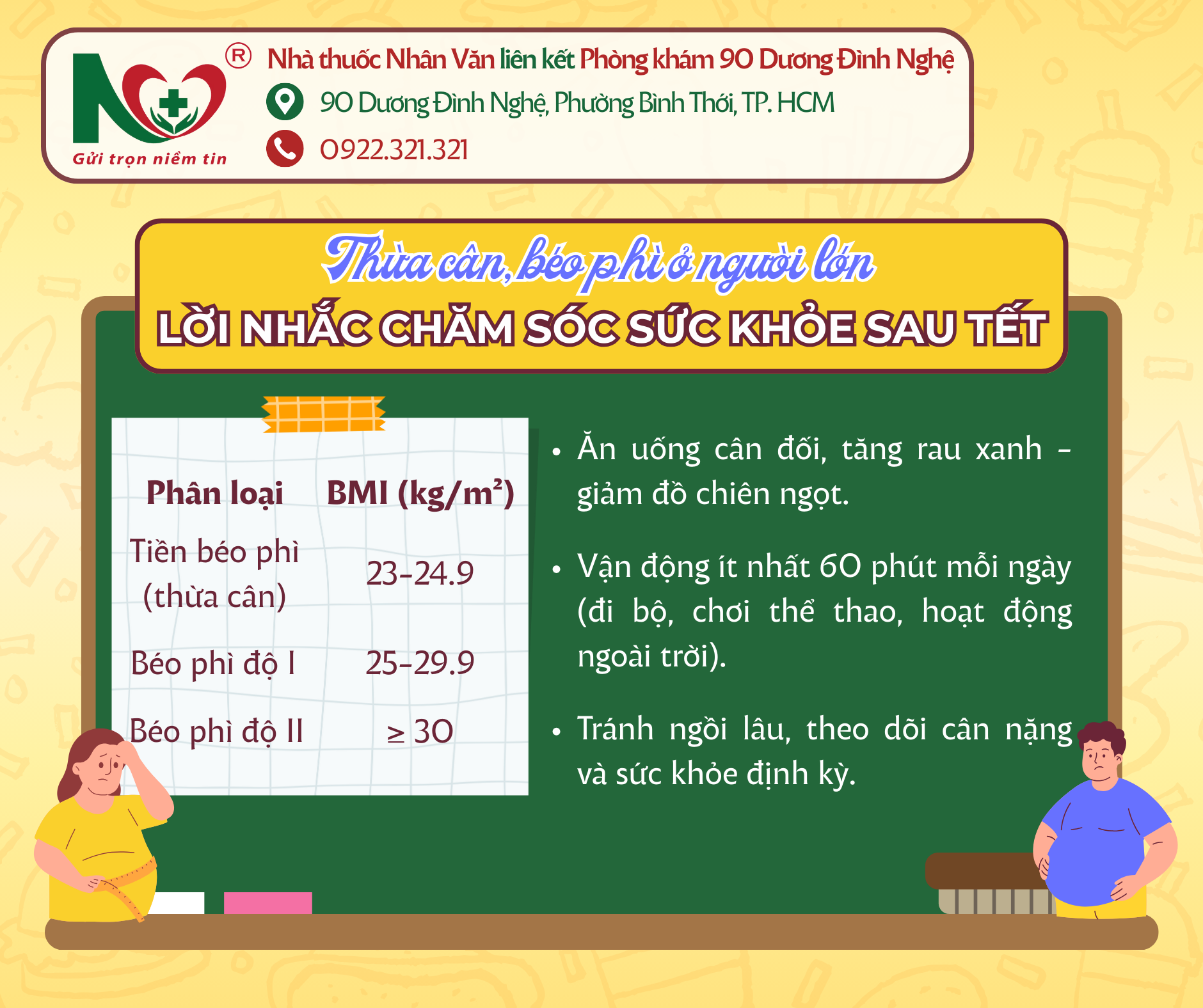 ● Theo dõi cân nặng và sức khỏe định kỳ: Nếu có dấu hiệu tăng cân bất thường sau Tết, cần đi khám để được tư vấn kịp thời.