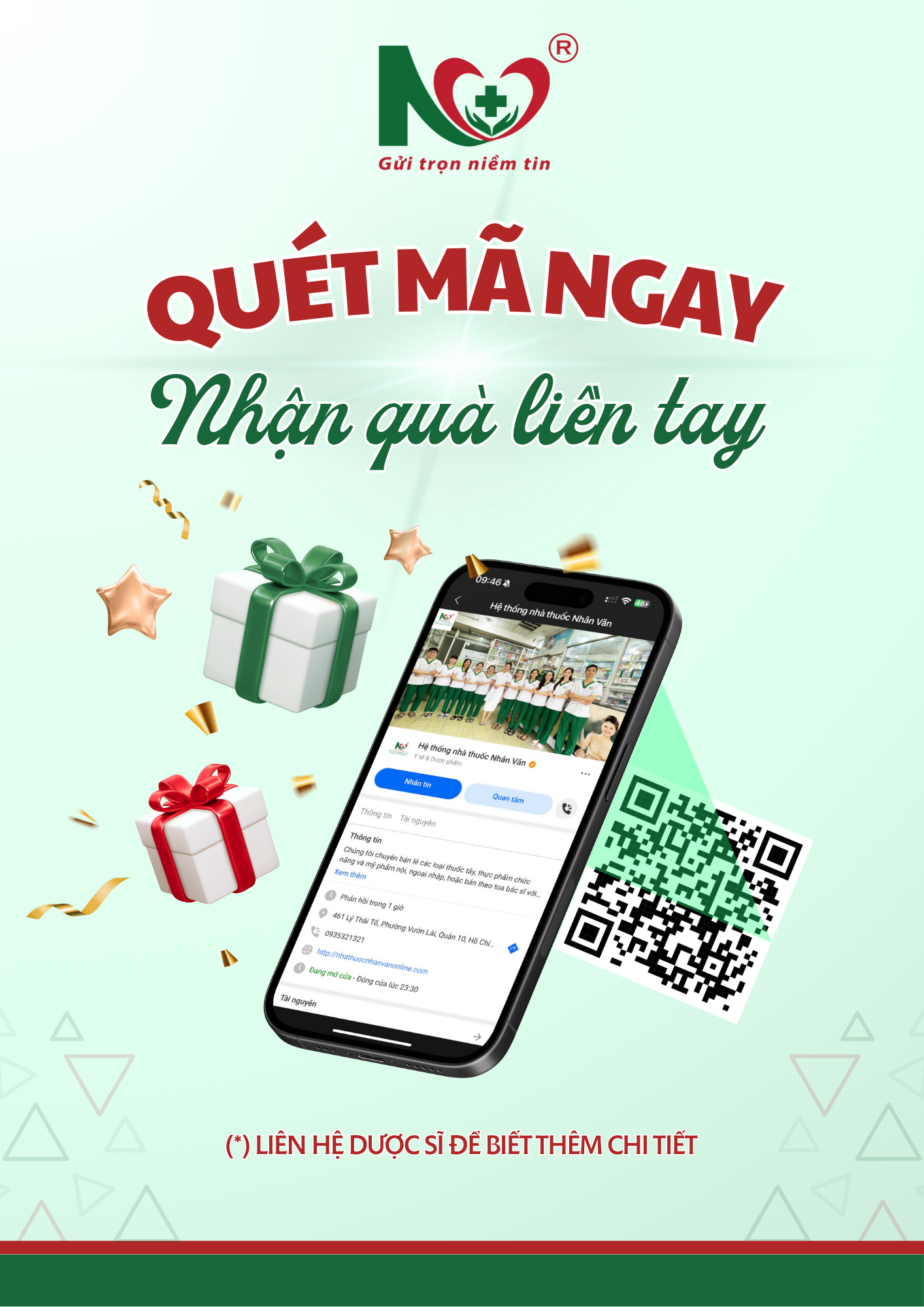 Hãy ghé ngay hệ thống Nhà thuốc Nhân Văn gần nhất để nhận Phiếu Quà Tặng tri ân và đừng bỏ lỡ cơ hội sở hữu nhiều phần quà giá trị.
