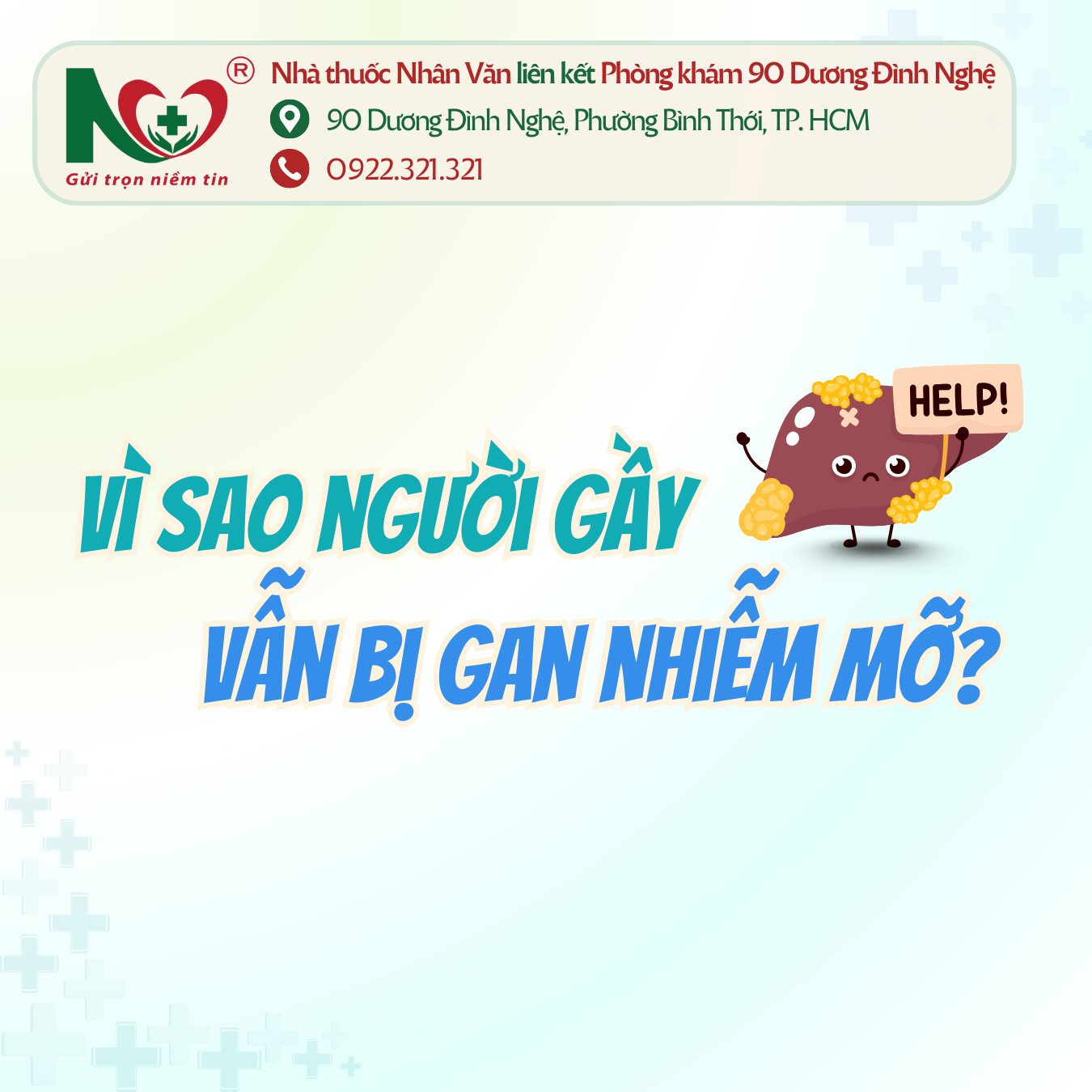 Gan nhiễm mỡ không chỉ xảy ra ở người béo phì – người gầy cũng có nguy cơ cao nếu có rối loạn chuyển hóa, lối sống không lành mạnh, ăn uống kém hợp lý hoặc yếu tố di truyền. Việc hiểu đúng, tầm soát sớm và thay đổi thói quen là chìa khóa để phòng ngừa bệnh hiệu quả. 👉 Nhà thuốc Nhân Văn liên kết Phòng khám 90 Dương Đình Nghệ luôn đồng hành cùng bạn trong việc tư vấn kiểm tra sức khỏe, lựa chọn sản phẩm hỗ trợ bảo vệ gan phù hợp và an toàn. Hãy đến ngay địa chỉ 90 Dương Đình Nghệ, Phường Bình Thới, TP. Hồ Chí Minh để được tư vấn tận tâm, giúp bạn bảo vệ lá gan khỏe mạnh mỗi ngày.